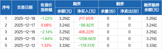 恒生科技指数ETF:融资净买入217.65万元,融资余额3.26亿元(12-18)