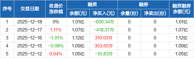 自由现金流ETF:融资净偿还600.34万元,融资余额1.01亿元(12-18)