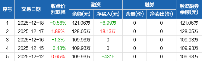 中证A500ETF基金:融资净偿还6.99万元,融资余额121.06万元(12-18)