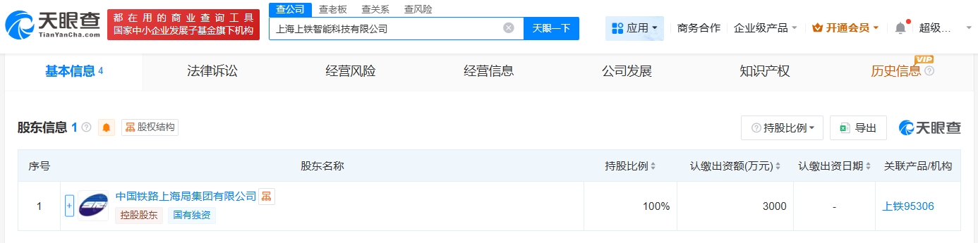 每经AI快讯,天眼查工商信息显示,12月19日,上海上铁智能科技有限公司成立,法定代表人为金其炳,注册资本3000万元人民币,经营范围包括人工智能通用应用系统、计算机软硬件及辅助设备零售、储能技术服务、智能机器人的研发等。股东信息显示,该公司由中国铁路上海局集团有限公司全资持股。