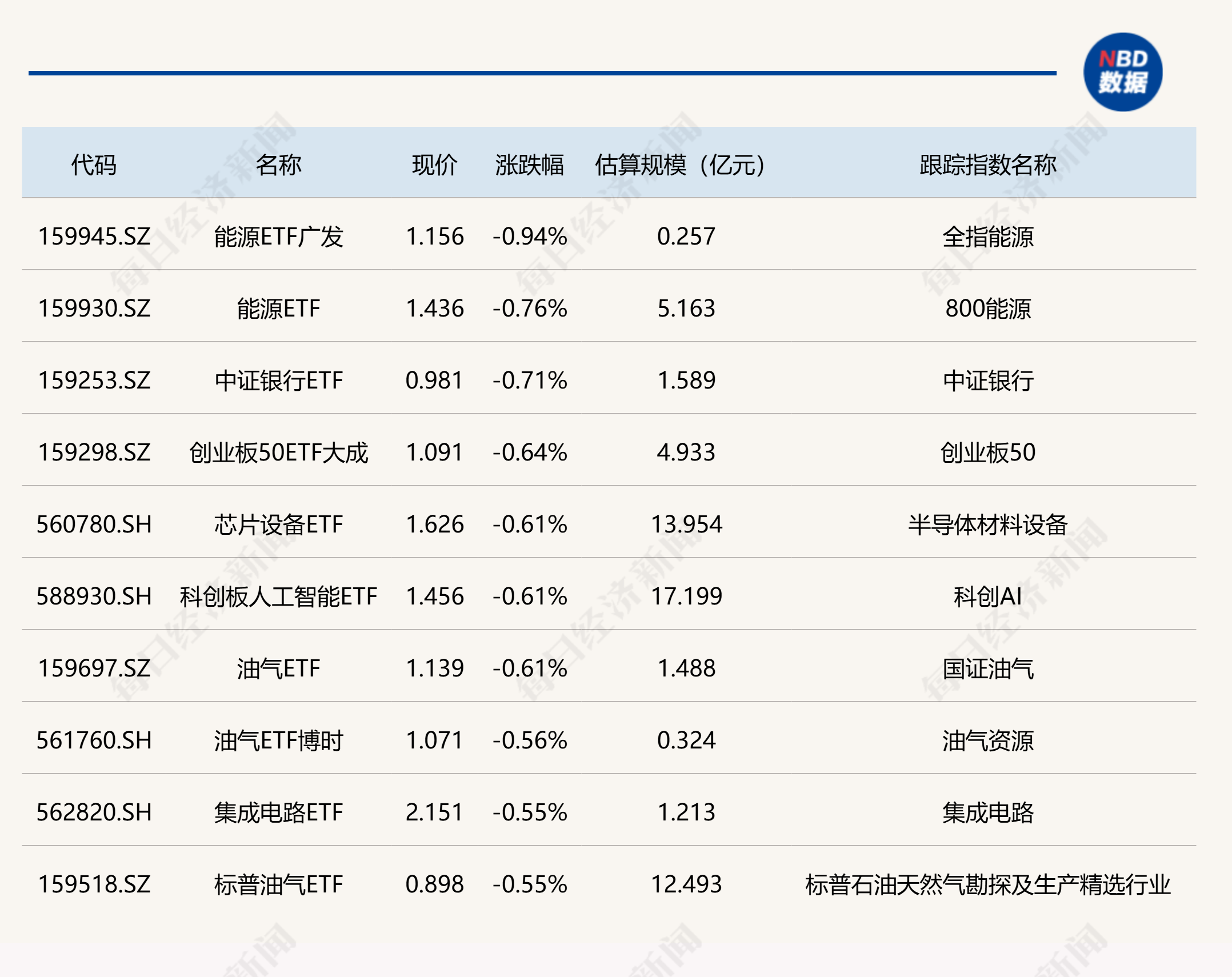 ETF今日收评 | 港股汽车相关ETF涨超3%,能源相关ETF跌幅居前