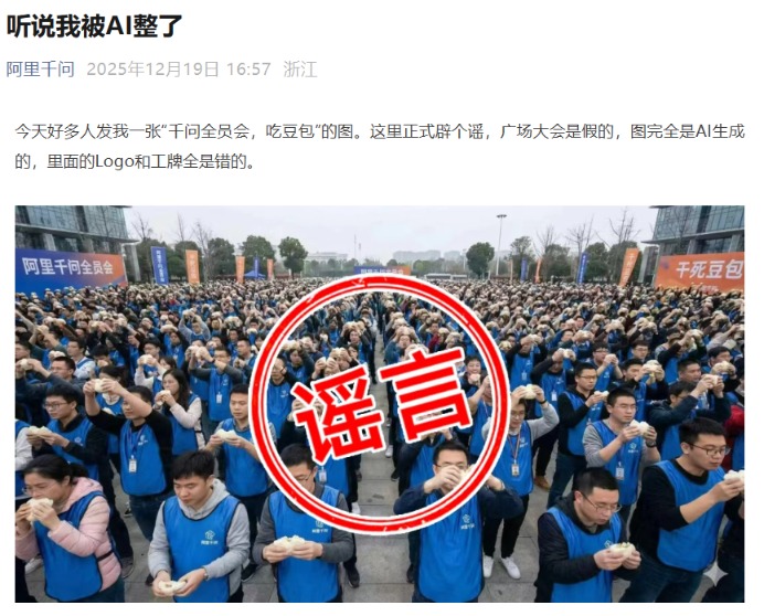 阿里千问辟谣:全员大会吃豆包图为AI生成