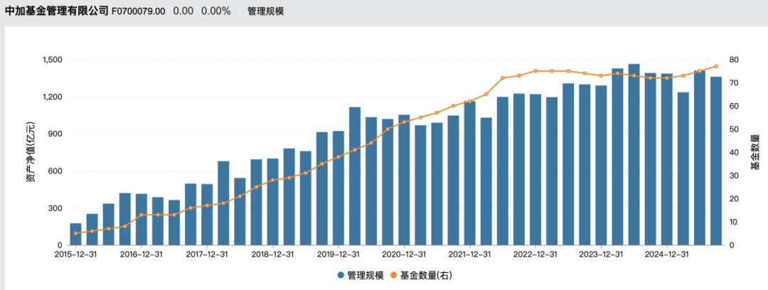 据Wind数据统计,截至今年三季度末,中加基金管理的公募基金产品规模为1360.38亿元,行业排名第52名;其中,非货基金规模为1179.45亿元,排在第45位。