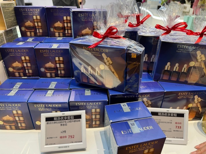 雅诗兰黛展台人气爆棚,展商们忙不迭地介绍产品特性、解答咨询,询价声、下单声此起彼伏,热闹非凡。据悉,雅诗兰黛集团携旗下12大品牌以集合店的形式参展,涵盖雅诗兰黛、倩碧、悦木之源等品牌,多款消费者耳熟能详的产品也集中亮相。