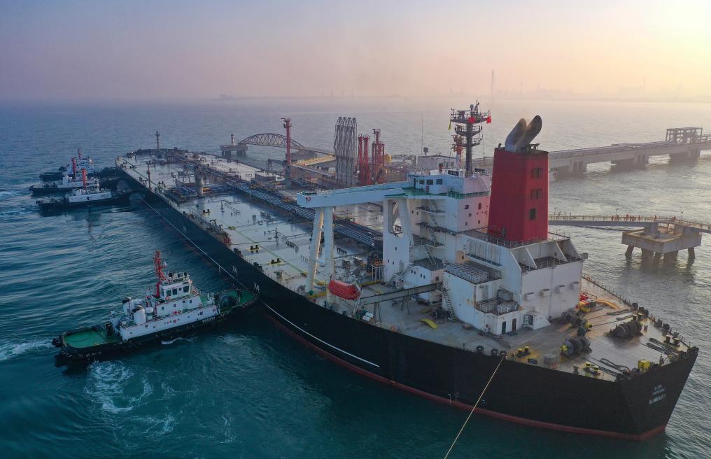 2025年12月18日,一艘装载着17.9万吨石化原辅料的船舶泊入国投洋浦油储码头30万吨级原油泊位(无人机照片)。这是海南自由贸易港正式启动全岛封关后洋浦港口岸第一批通关的“零关税”石化原辅料。新华社记者郭程摄