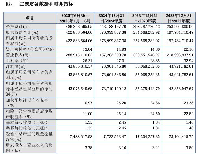 不过,2022年至2025年上半年三年一期,赛英电子的经营活动产生的现金流量净额分别为2370.44万元、1720.43万元、-772.26万元和-748.86万元,远低于同期的净利润。