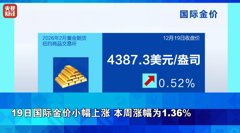 贵金属市场方面,周五,包括委内瑞拉局势在内的地缘政治紧张局势,增强了贵金属的避险吸引力,推动国际金价温和走高。截至收盘,纽商所交投最活跃的明年2月黄金期价报每盎司4387.30美元,涨幅为0.52%。本周,纽约商品交易所黄金期货主力合约价格累计上涨1.36%。