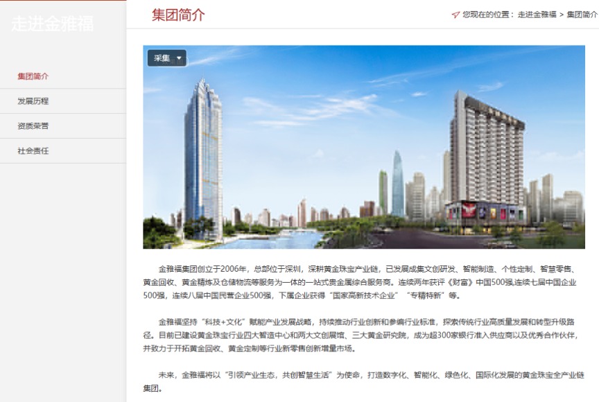 据公司官网,金雅福创立于2006年,总部位于深圳,深耕黄金珠宝产业链,已发展成集文创研发、智能制造、个性定制、智慧零售、黄金回收、黄金精炼及仓储物流等服务为一体的一站式贵金属综合服务商。