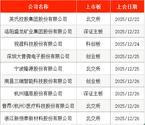 从时间表看,新广益(301687)、陕西旅游(603402)将在本周一(12月22日)申购;蘅东光(920045)将在本周二(12月23日)申购。