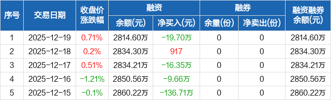 中药ETF:融资净偿还19.7万元,融资余额2814.6万元(12-19)