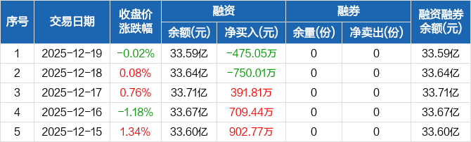 黄金ETF基金:融资净偿还475.05万元,融资余额33.59亿元(12-19)