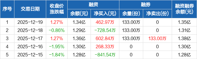 机器人50ETF:融资净买入462.97万元,融资余额1.34亿元(12-19)