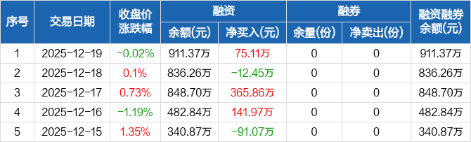 金ETF:融资净买入75.11万元,融资余额911.37万元(12-19)