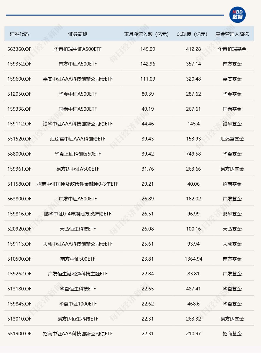 ETF规模速报 | 科创债ETF招商、A500ETF南方,上周五净流入额均超20亿元
