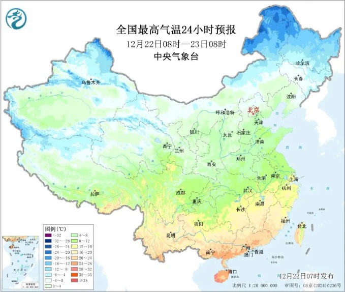 中央气象台预计,22日8时至23日8时,新疆西南部和沿天山地区、内蒙古西南部和中东部、东北地区、甘肃河西、青海北部、陕西中部、华北等地部分地区有小到中雪或雨夹雪。陕西南部、黄淮、江淮、江汉、湖南中北部、西南地区东部、广西中西部、广东东南部、海南岛东部、台湾岛东部等地部分地区有小雨。