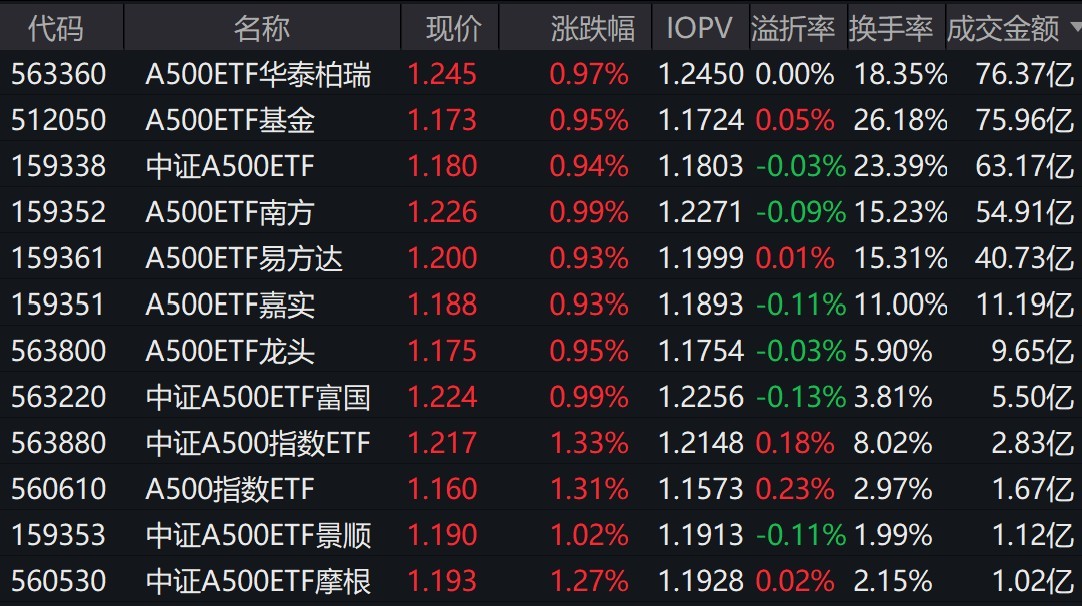市场早盘集体走强,中证A500指数上涨1.06%,3只中证A500相关ETF成交额超63亿元