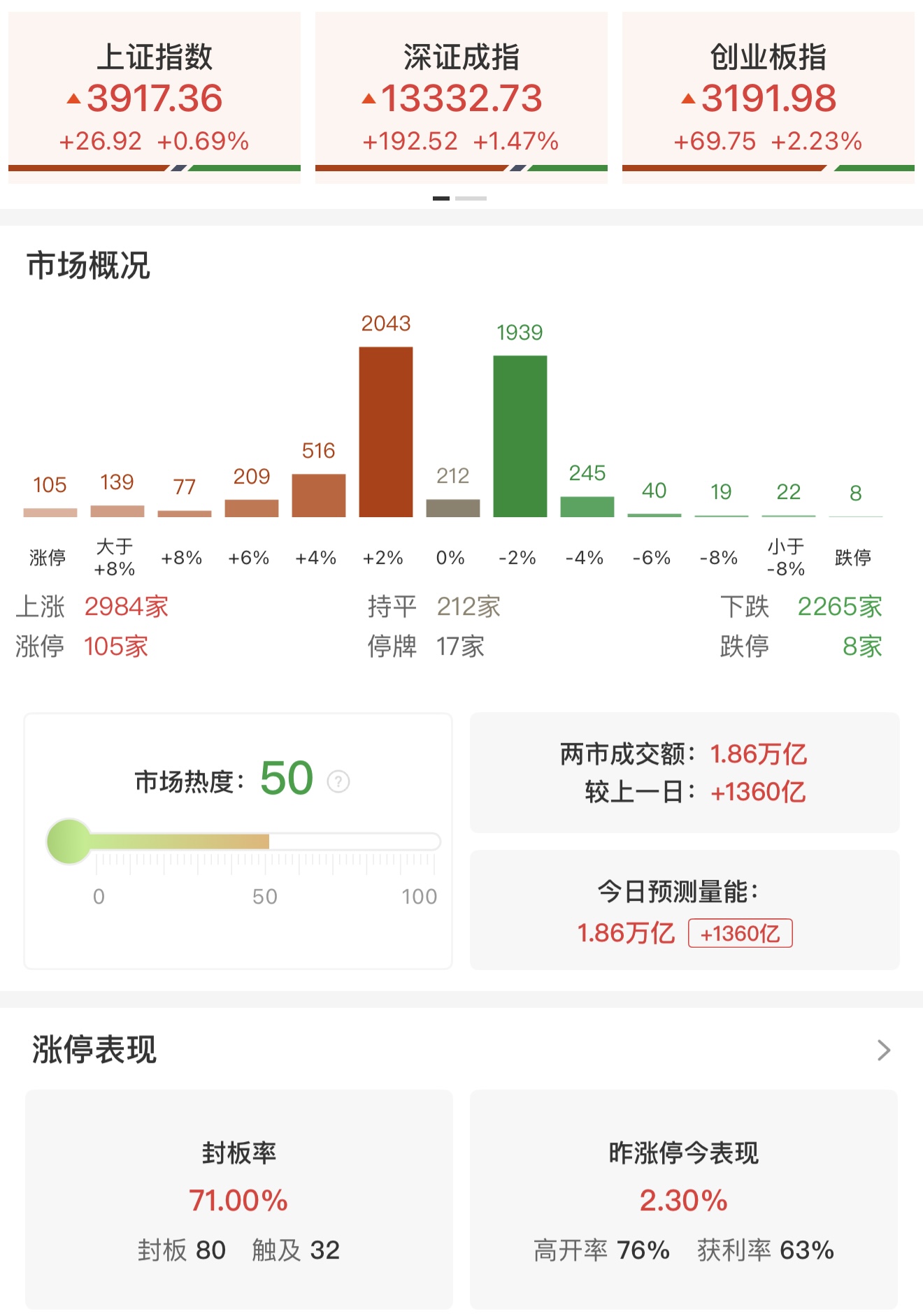 收评:创业板指高开高走涨超2% 全市场超百股涨停
