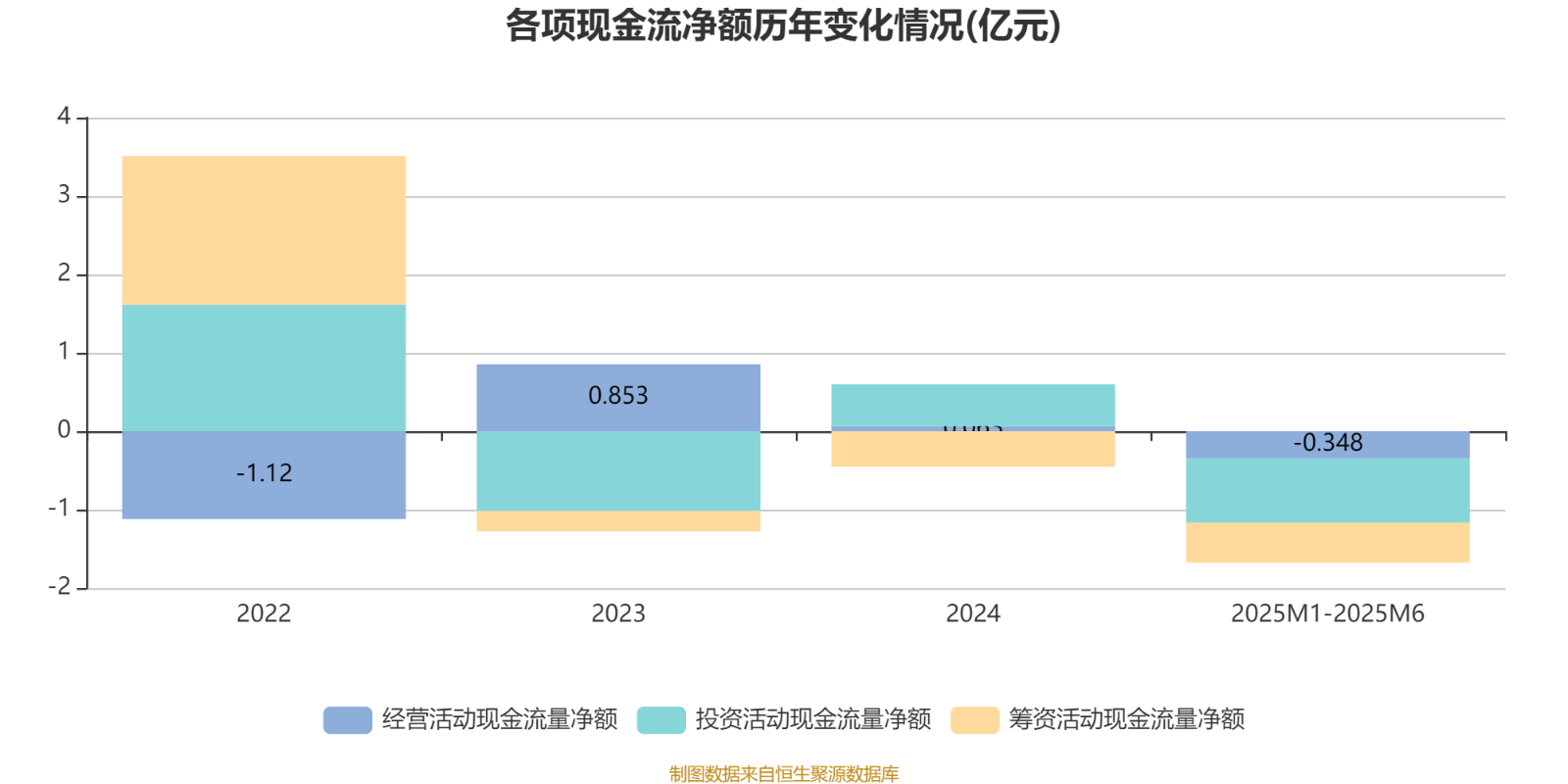 2025年1月至6月,公司经营活动现金流净额为-3477.8万元,同比减少5107.6万元;筹资活动现金流净额-5113.2万元,同比减少5109.4万元;投资活动现金流净额-8191.4万元,上年同期为-8469.5万元。