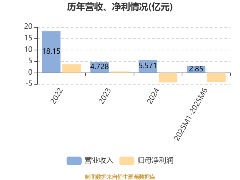 2025年1月1日至2025年6月30日,公司实现营业收入2.85亿元,同比增长12.69%;归母净利润亏损4.14亿元,上年同期亏损2亿元;经营活动产生的现金流量净额为-3477.8万元,上年同期为1629.8万元。