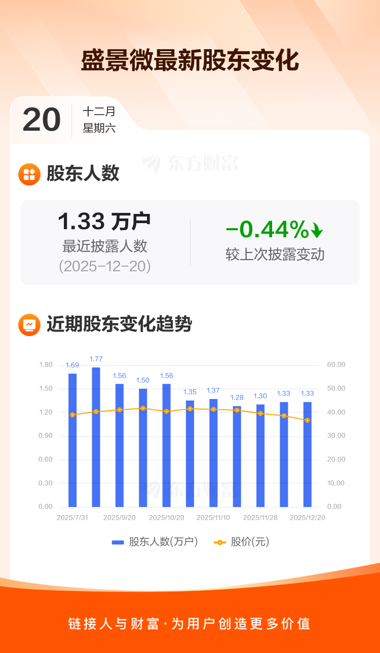 盛景微:截至12月20日最新股东户数1.33万户,较上期减少0.44%