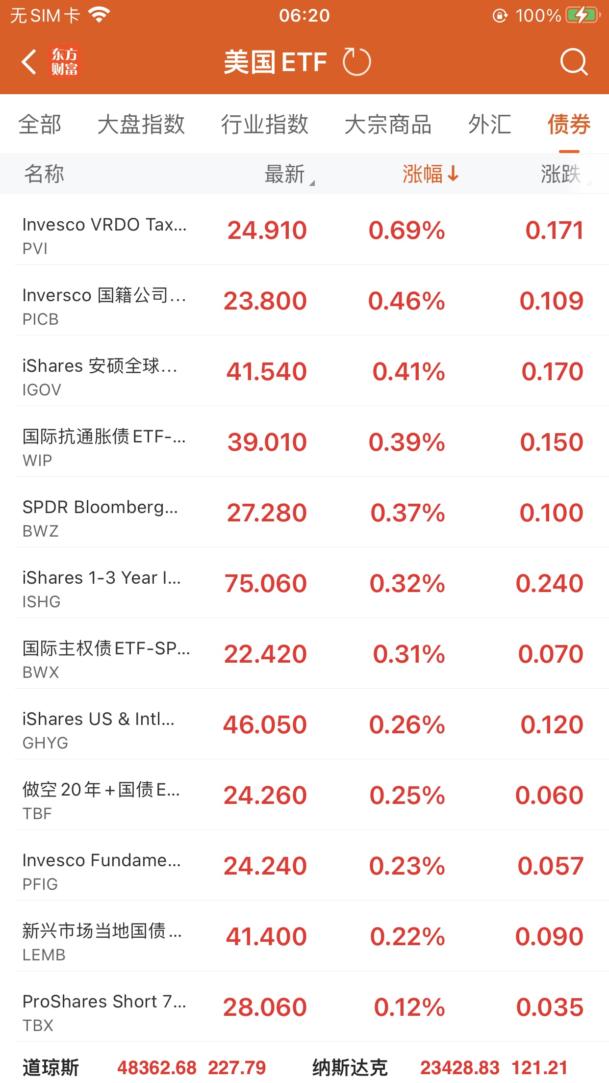 Invesco Floating Rate Municipal ETF(PVI.US) 升0.69%,成交额121.98万美元。