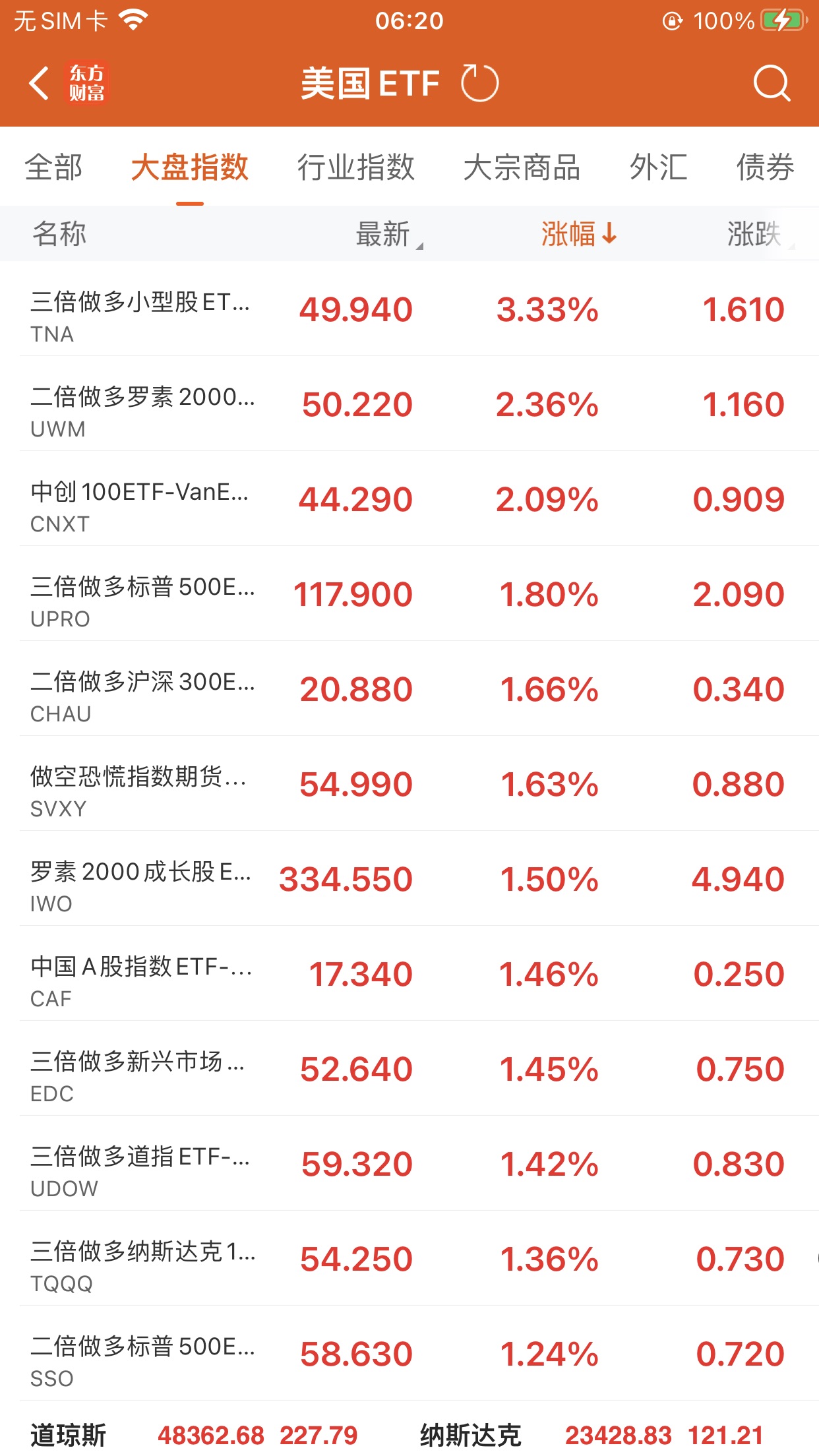 三倍做多小盘股ETF-Direxion(TNA.US) 升3.33%,成交额 3.17亿美元。