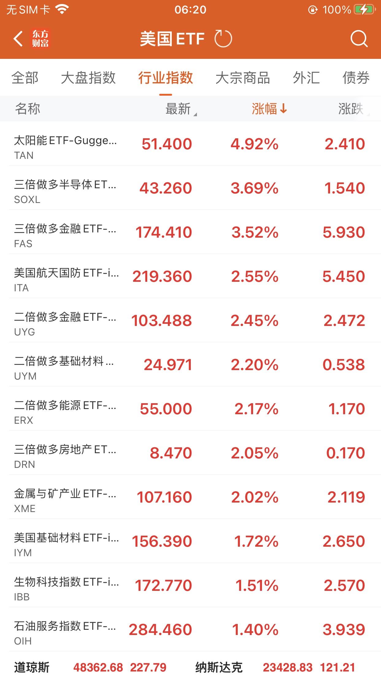 太阳能ETF-Invesco(TAN.US) 升4.92%,成交额1.3亿美元。