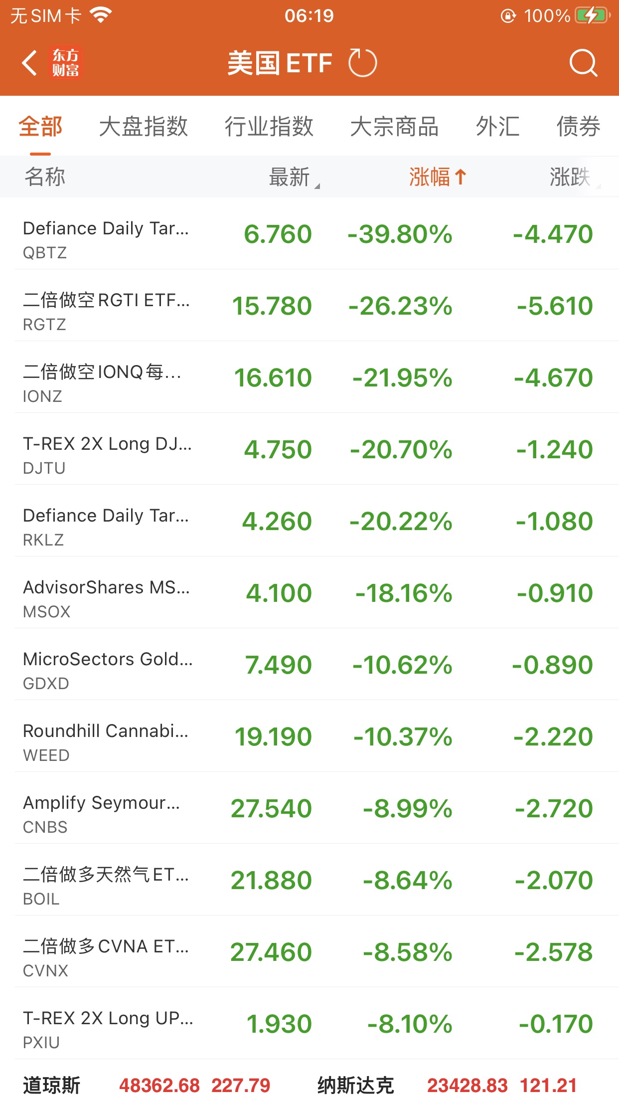 2倍做空RGTI ETF-Defiance(RGTZ.US) 跌26.23%,成交额1.93亿美元。