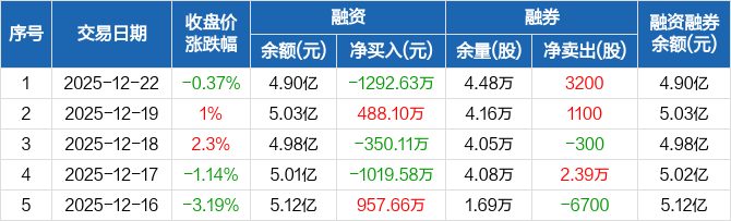 浦东建设:融资净偿还1292.63万元,融资余额4.9亿元(12-22)