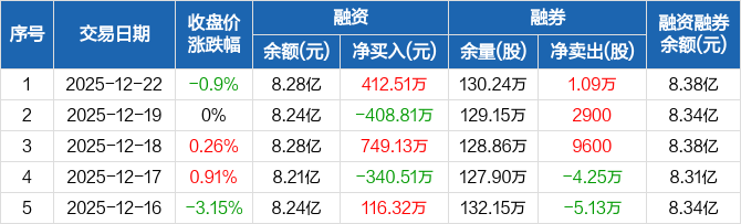 华阳股份融资融券信息显示,2025年12月22日融资净买入412.51万元;融资余额8.28亿元,较前一日增加0.5%。