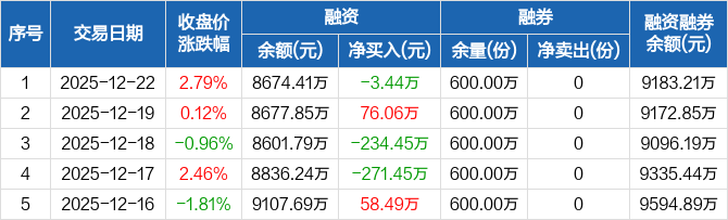 芯片ETF龙头:融资净偿还3.44万元,融资余额8674.41万元(12-22)