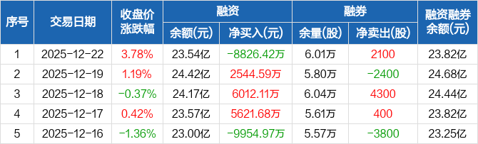 北方华创:融资净偿还8826.42万元,融资余额23.54亿元(12-22)