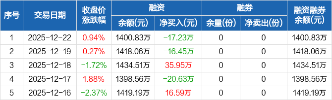 碳中和ETF:融资净偿还17.23万元,融资余额1400.83万元(12-22)