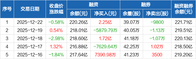 宁德时代:融资余额220.26亿元,创历史新高(12-22)
