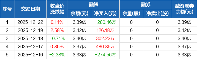 亚太药业:融资净偿还280.46万元,融资余额3.39亿元(12-22)