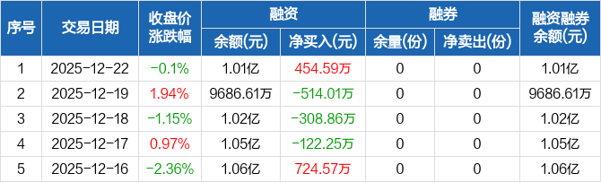 恒生互联网ETF:融资净买入454.59万元,融资余额1.01亿元(12-22)