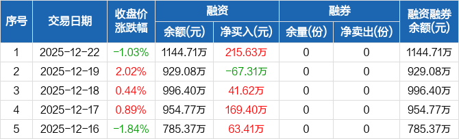 恒生生物科技ETF:融资净买入215.63万元,融资余额1144.71万元(12-22)