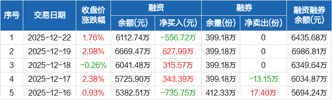 旅游ETF:融资净偿还556.72万元,融资余额6112.74万元(12-22)