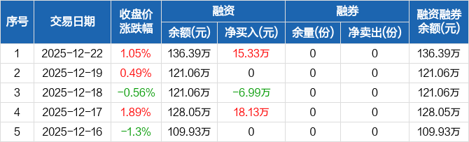 中证A500ETF基金:融资净买入15.33万元,融资余额136.39万元(12-22)