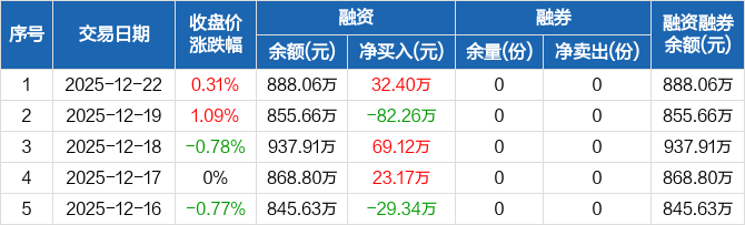 畜牧ETF:融资净买入32.4万元,融资余额888.06万元(12-22)