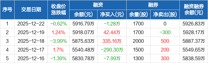 绿联科技:融资净偿还1.28万元,融资余额5916.79万元(12-22)
