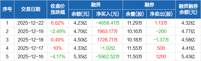 中瓷电子:融资净偿还4658.41万元,融资余额4.23亿元(12-22)
