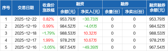 光伏50ETF:融资净偿还30.73万元,融资余额953.79万元(12-22)