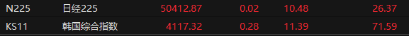 12月23日,日韩股市收盘齐涨。日经225指数微涨0.02%,报50412.87点;韩国综合指数涨0.28%,报4117.32点。