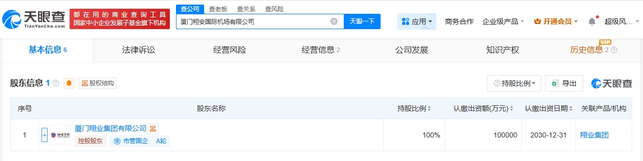 每经AI快讯,天眼查App显示,近日,厦门翔安国际机场有限公司成立,法定代表人为张仕亮,注册资本10亿元人民币,经营范围包括民用机场运营、旅客票务代理、航空运输货物打包服务、装卸搬运、国内货物运输代理等。股东信息显示,该公司由厦门翔业集团有限公司全资持股。