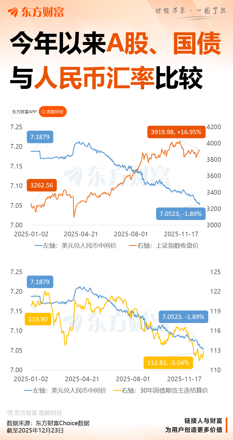 12月23日午后,国债期货拉升,30年期主力合约日内涨超0.90%。各期限国债集体大涨。与此同时,离岸人民币兑美元盘中涨破7.02关口,创2024年10月来新高,日内涨逾110点。