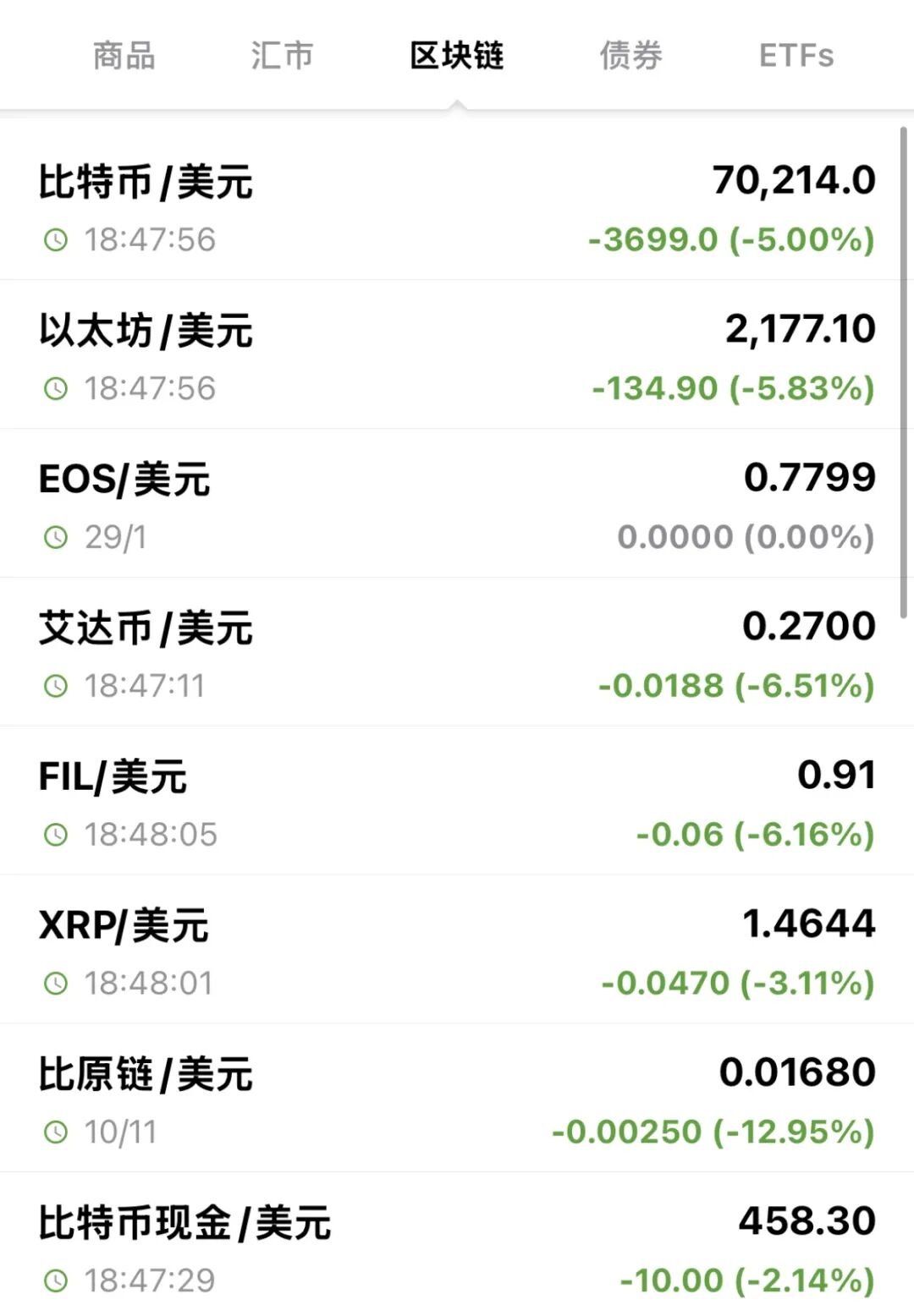 加密货币全线重挫,比特币现报70214美元/枚,过去24小时内跌5%;以太坊跌至2177.10美元/枚,过去24小时内跌5.83%。