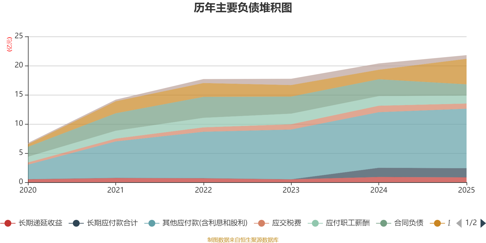 负债重大变化方面,截至2025年末,公司应付票据及应付账款较上年末增加168.83%,占公司总资产比重上升3.86个百分点;合同负债较上年末减少33.32%,占公司总资产比重下降1.64个百分点;其他流动负债较上年末减少68.4%,占公司总资产比重下降0.96个百分点;应付职工薪酬较上年末减少17.48%,占公司总资产比重下降0.56个百分点。