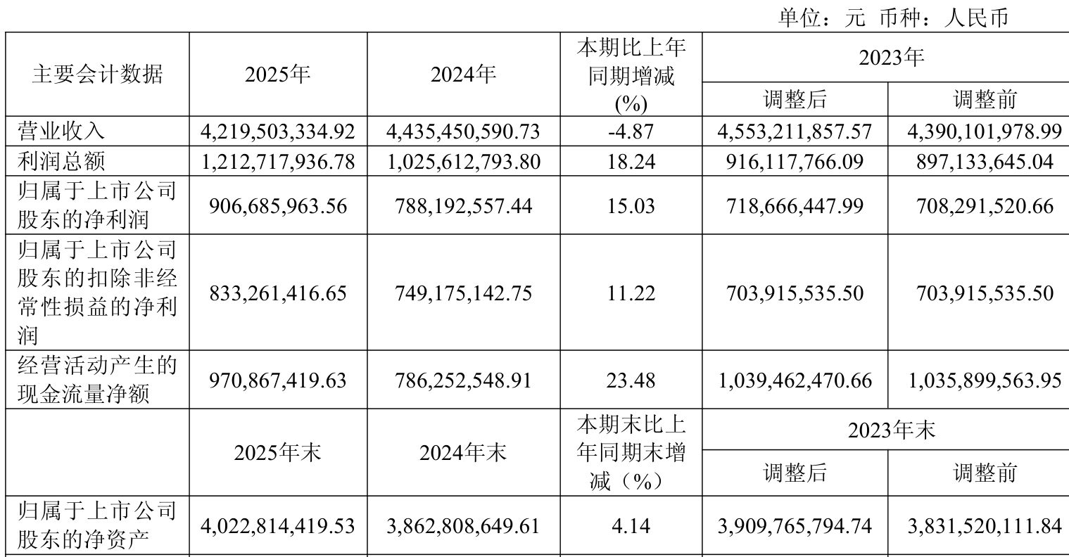 数据显示,2025年公司加权平均净资产收益率为22.75%,较上年同期上升3.17个百分点。公司2025年投入资本回报率为20.21%,较上年同期上升2.7个百分点。