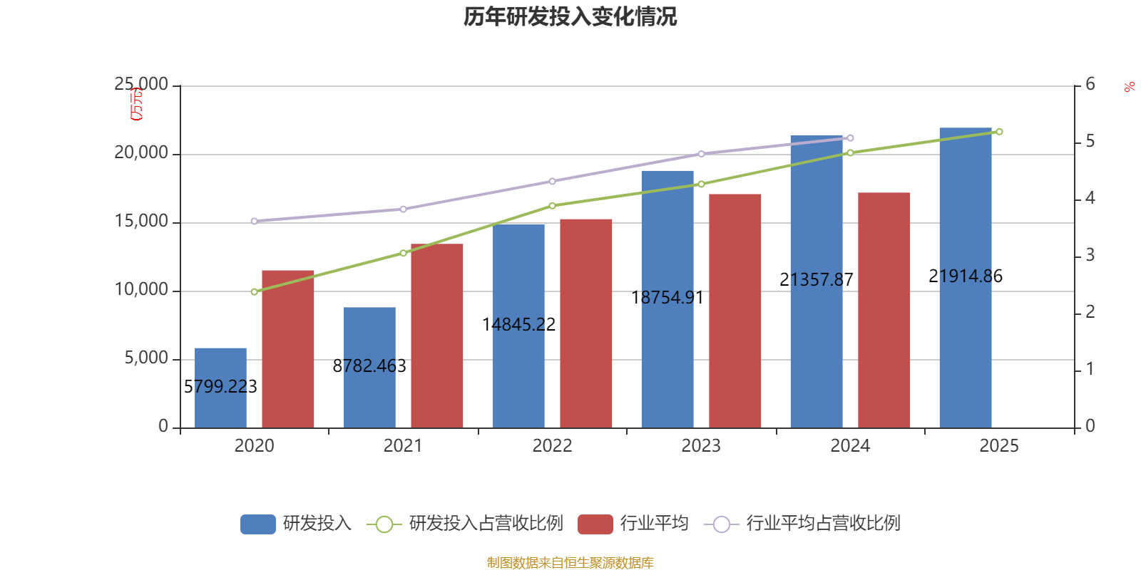 2025年全年,公司研发投入金额为2.19亿元,同比增长2.61%;研发投入占营业收入比例为5.19%,相比上年同期上升0.37个百分点。此外,公司全年研发投入资本化率为27.7%。